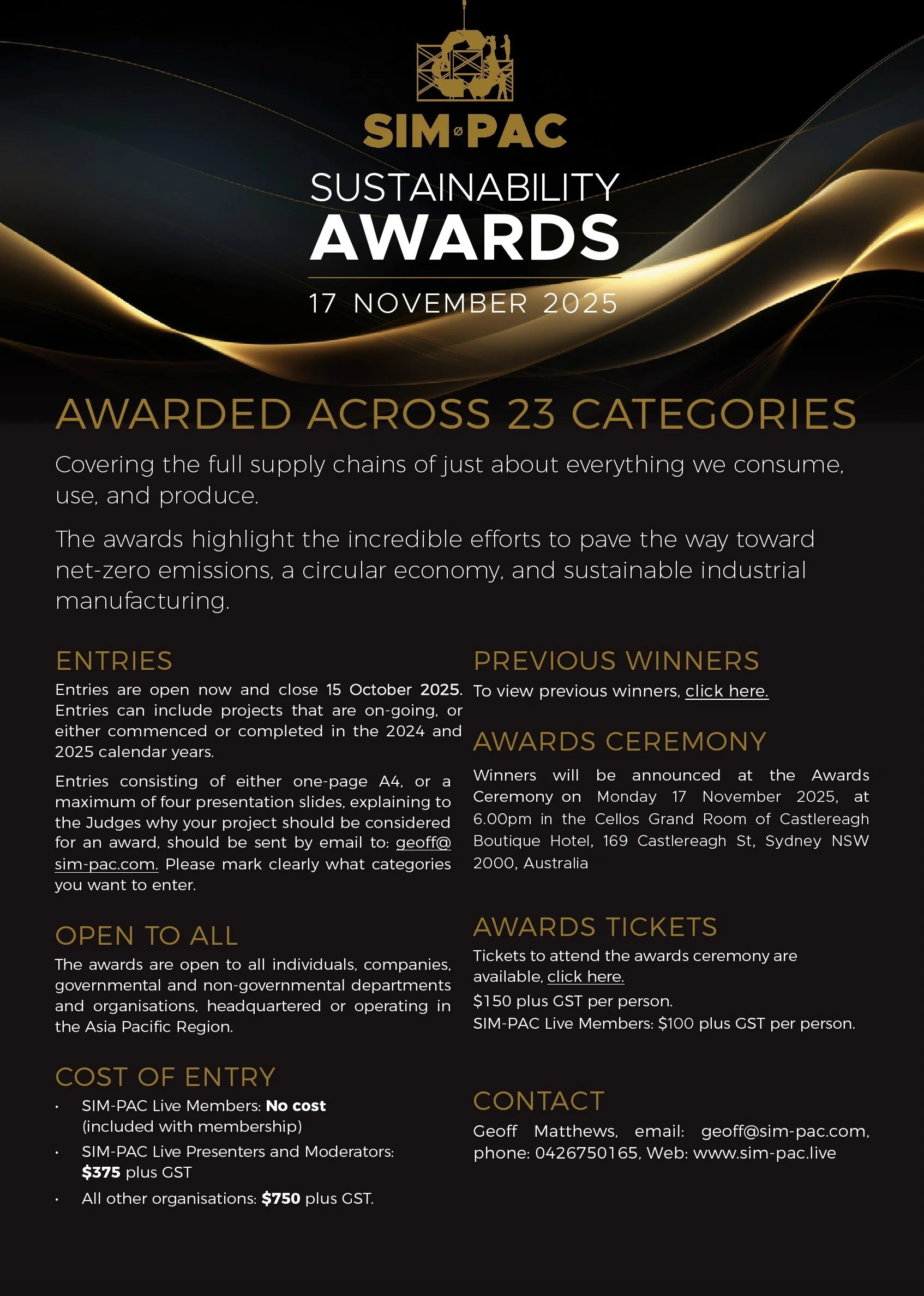 • Geoff Matthews: Founder, SIM-PAC Live Sustainability Awards.